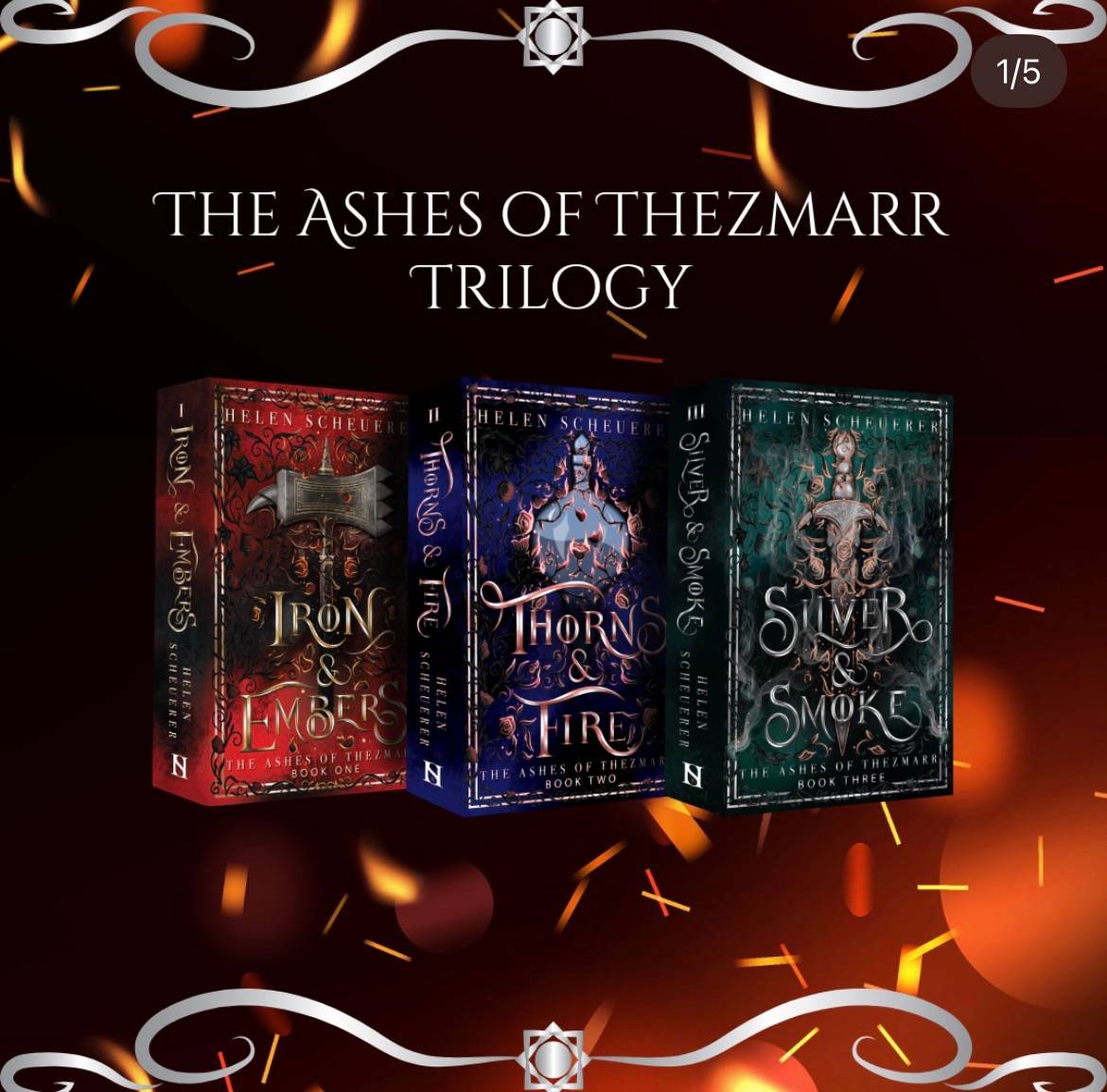 Silver & Smoke (Ashes of Thezmarr book 3) by Helen Scheuerer- The third and final book in Helen's spinoff series came out last week, and I am so pumped to see where this story is headed. You heard me raving about this series earlier this year, but as not to spoil anything, I'll just share a little about book one, Iron & Embers. Our FMC, Wren, is an alchemist-turned-assassin who finds solace in seeking vengeance for the death of her friends. She's been hiding from the world for years after the war, but when an unknown form of alchemy is used to attack a king of the midrealms, Wren is forced out of her solitude in the hopes of finding a cure to the dark magic threatening the kingdoms. She sets out to earn her spot at Drevenor, the ancient alchemy academy, to conquer the Gauntlet, a grueling series of deadly trials that could cost her sanity or her life. Click the graphic below to check it out.