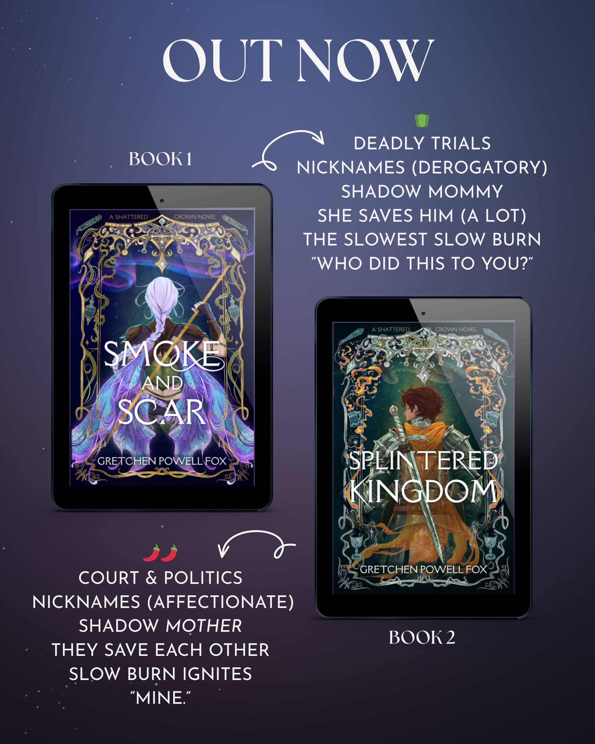 Splintered Kingdom (Shattered Crown Book 2) by Gretchen Powell Fox- I'm so excited for this book. I have both books one and two on audio, and I'm anxiously awaiting the end of the Libby tsunami I'm surfing right now so that I can finally listen to them. To avoid spoilers, I'll give you a quick pitch for book 1, Smoke & Scar: A shadow-wielding fae warrior must reluctantly battle through a series of deadly trials alongside the human knight who hates her—but who she can’t seem to stop saving anyway. Now I have not read this yet, but I have it on good authority that the MMC Cedric Thorne would be the best of friends with Rainer McKay, and don't we all love a down bad pathetic man.