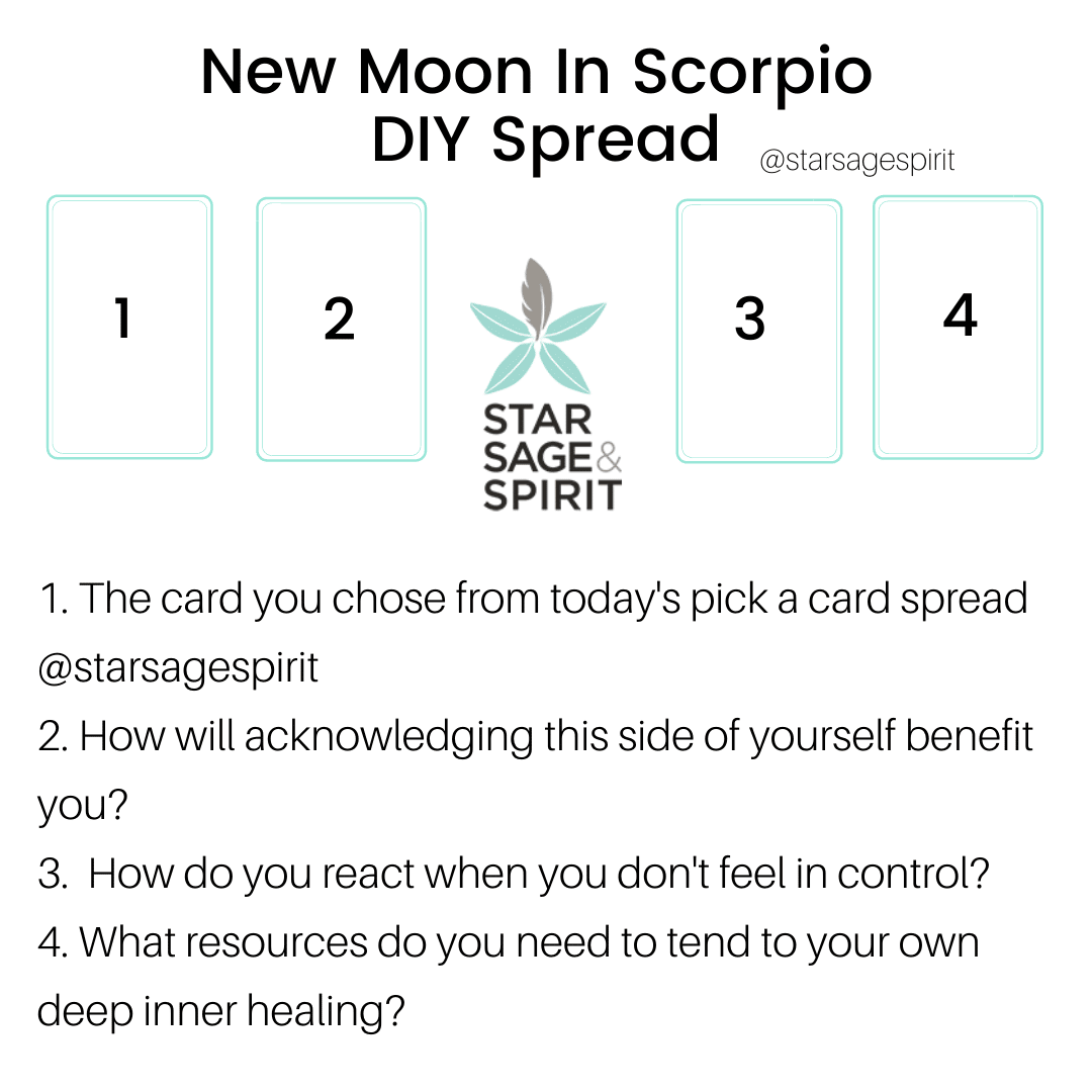 New Moon in Scorpio - This lunation brings us face to face with the deepest parts of ourselves. What is subconscious becomes conscious. This is a place to meet ourselves with compassion, to surrender to the pull of the parts of ourselves we normally hide that want to surface, and to accept those parts of ourselves without judging them as good or bad.